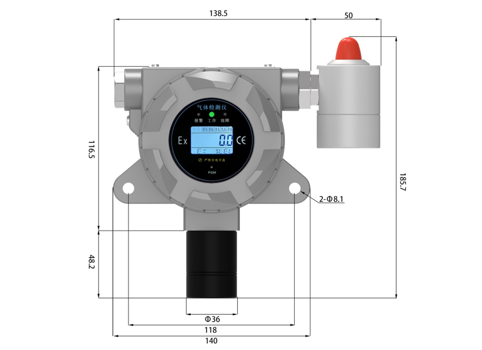 ●可通過遙控器,免開蓋對檢測儀進行報警點、零點調整和目標點標定;